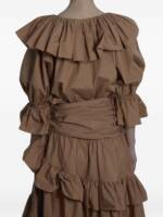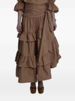 brown tie belt tiered ruffles zip closure Cotton long skirt.