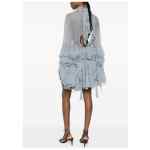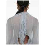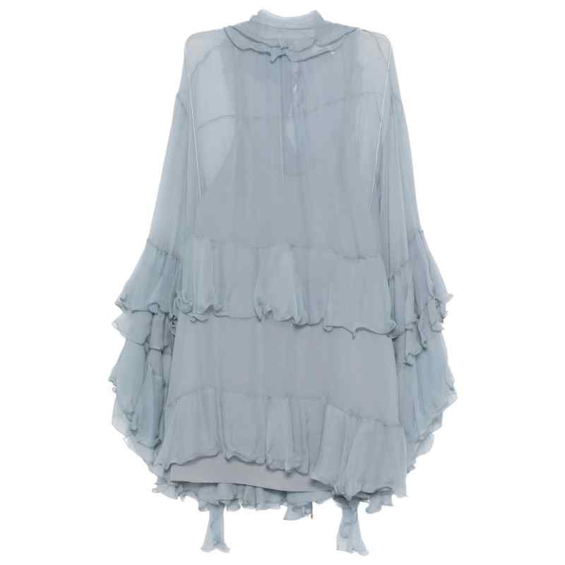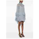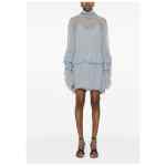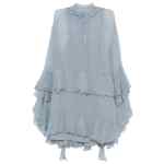 blue tiered design ruffle detailing high neck long sleeves tie detailing Silk short dress.