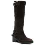 brown leather upper multiple buckles block heel round toe knee-high shaft Dakota leather boots