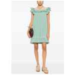 green lace detailing ruffled trim crew neck keyhole detailing short sleeves Silk mini dress
