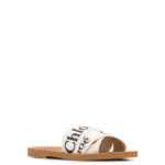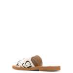 white linen all-over logo print low stacked heel Woody flat sandals