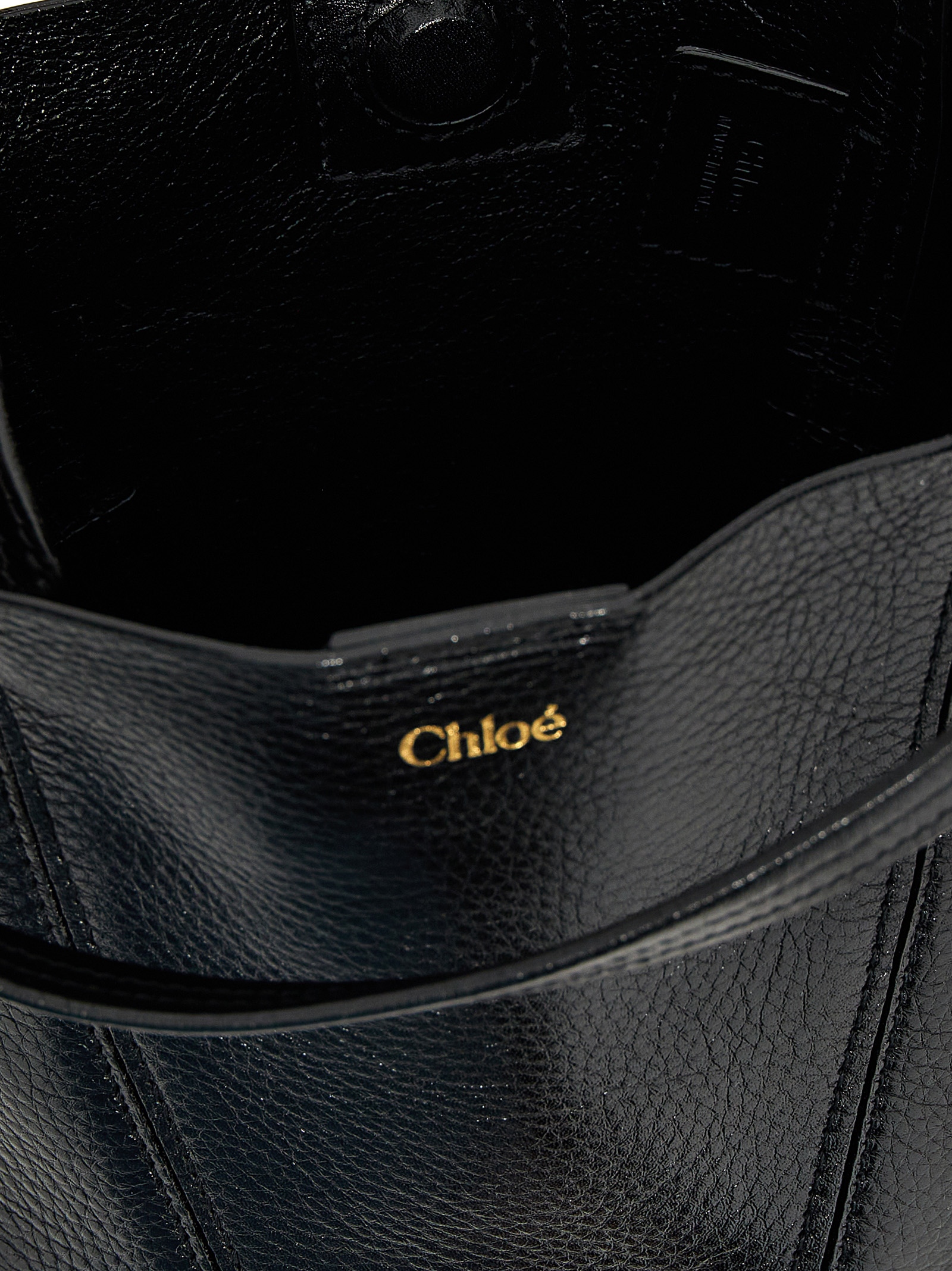 ‘Chloé Spin’ grainy leather handbag with front embossed logo, double handle, pendant chain with Chloé and Horse medals, ring to be inserted into the handles, adjustable and removable shoulder strap.
