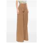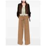 caramel brown front button and zip fastening two side inset pockets two rear button-fastening jetted pockets belt loops Cotton wide-leg trousers