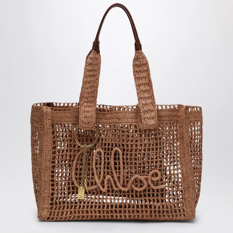 Tote bag by Chloé in crochet raffia and buffalo leather