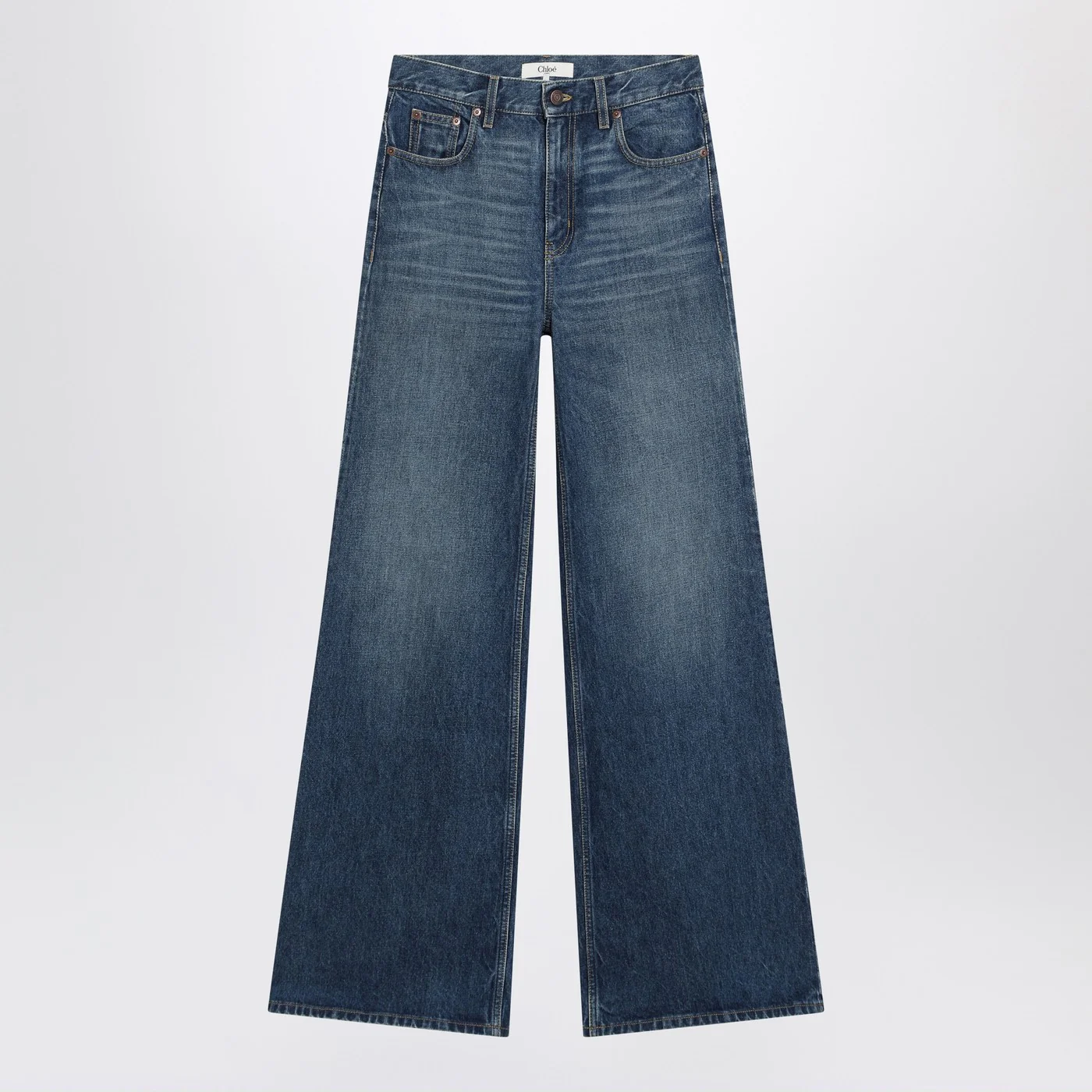 Chloé jeans in blue cotton denim characterized by flared design belt loops five pockets zip and button closure and logo label on the back.