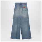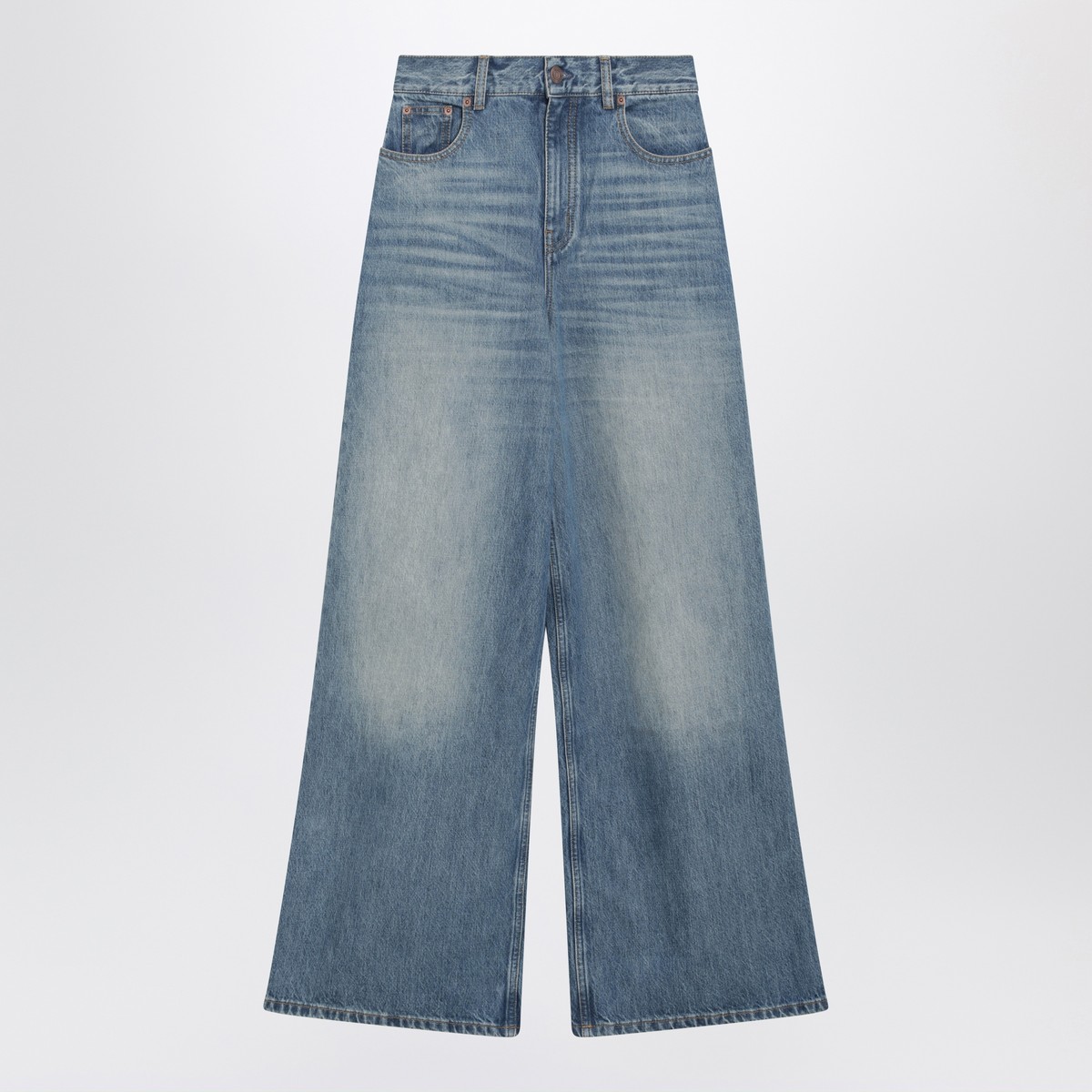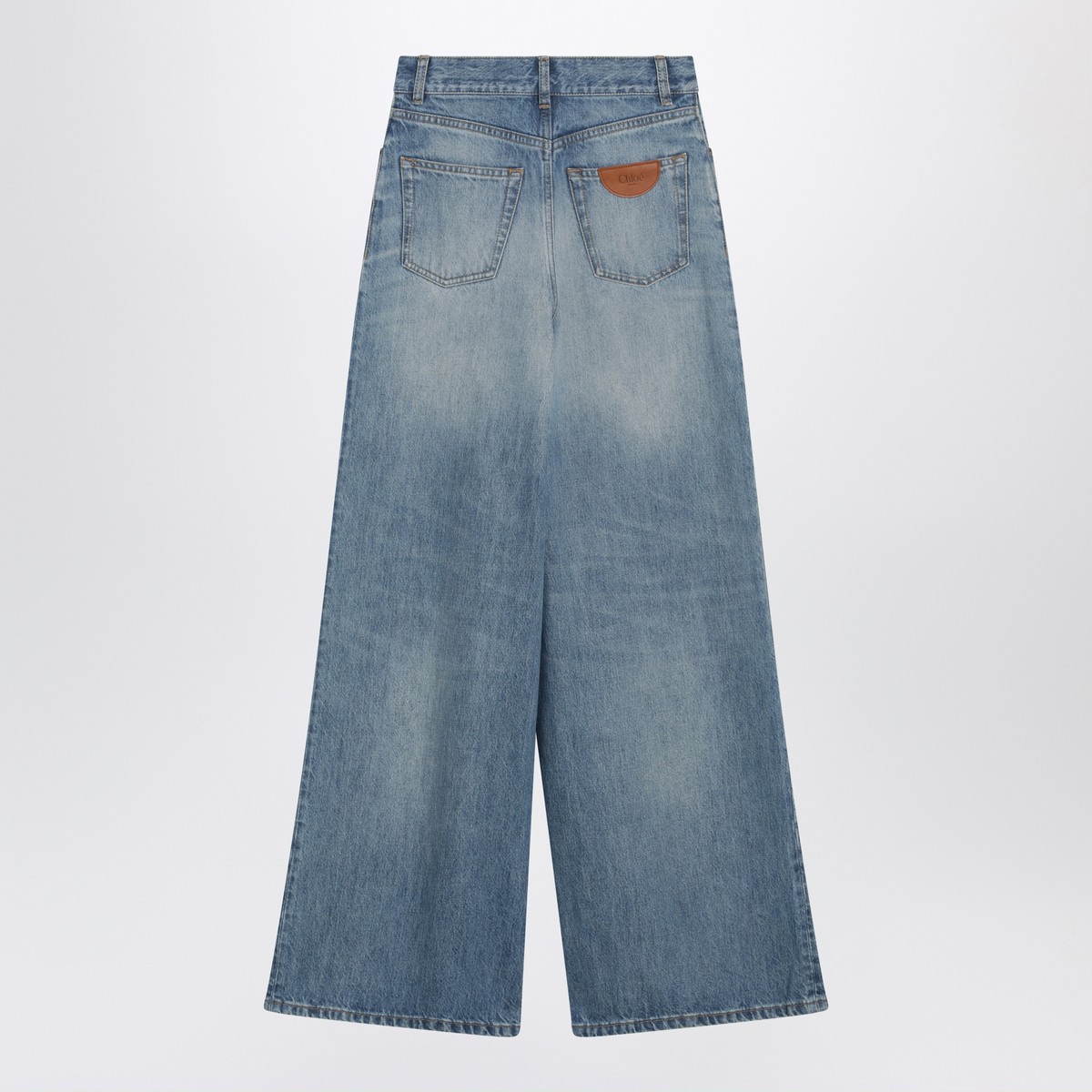 Chloé Dream Blue denim jeans featuring wide leg, high waist, belt loops, front zip and logo-engraved button fastening, classic five-pocket design and rear logo label.