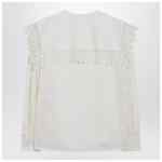 Silk jacquard blouse by Chloé, featuring a floral pattern, oversized collar with lace trim, front button closure, long sleeves, and buttoned cuffs.