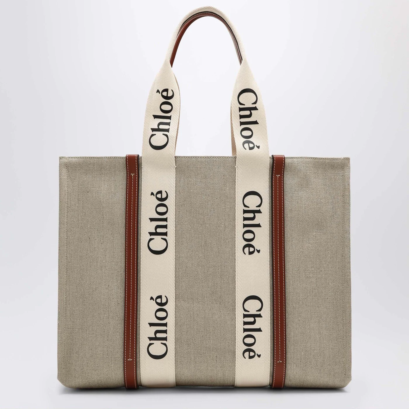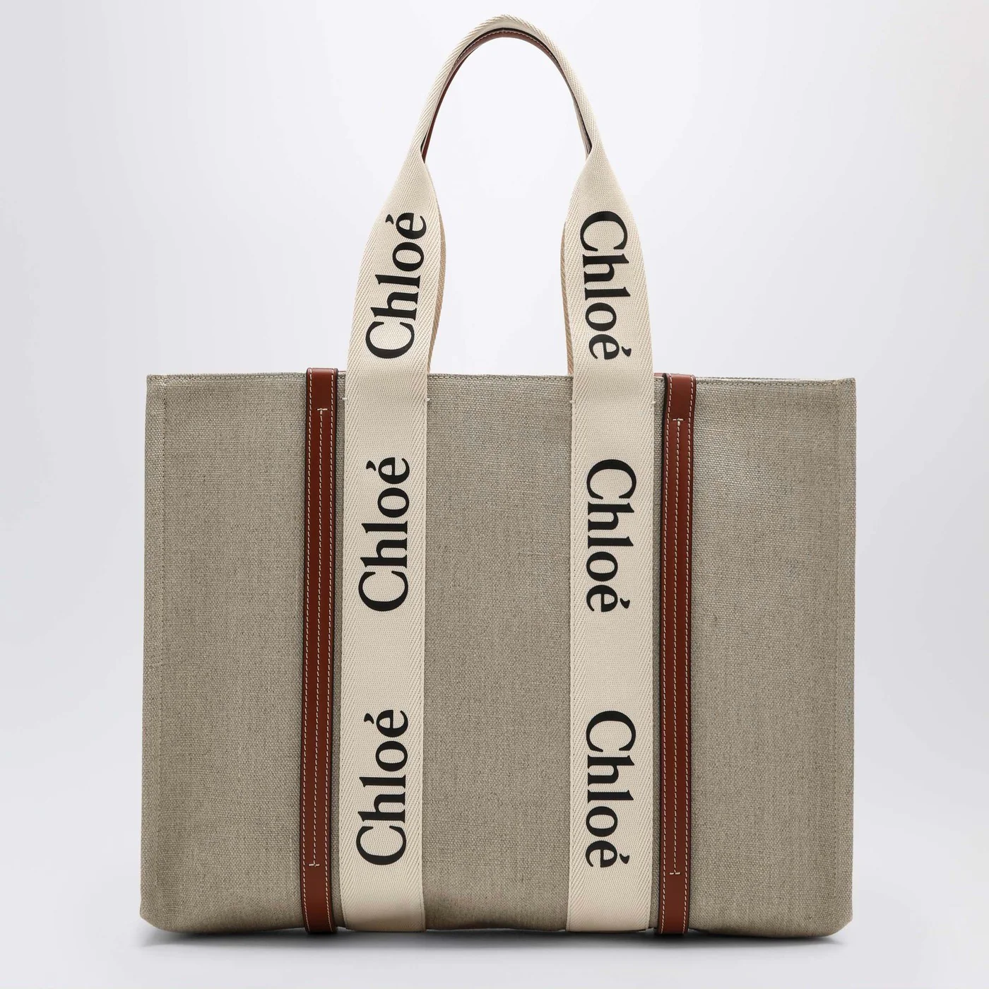 Chloé Large Woody tote bag in beige canvas