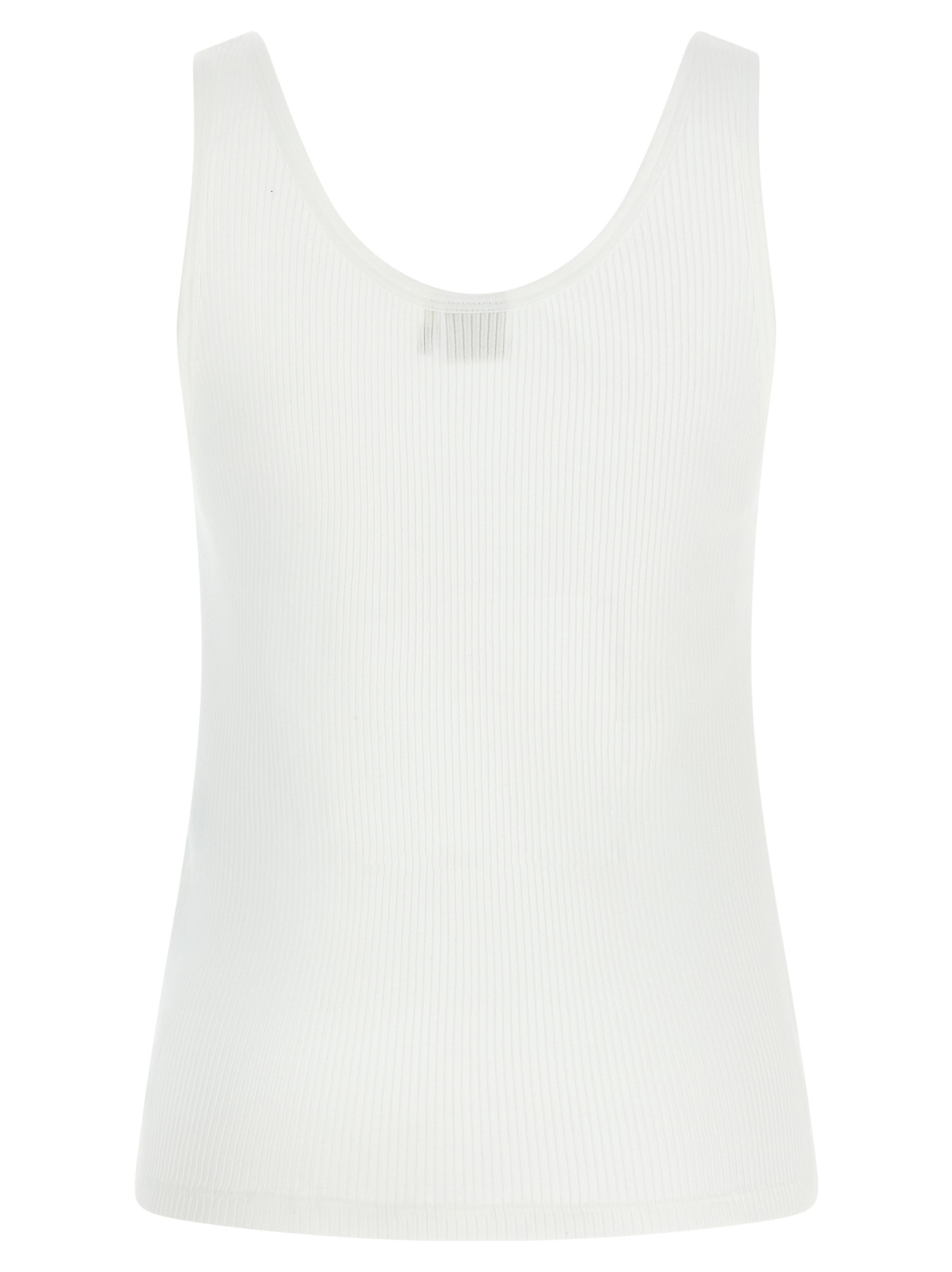 Slightly stretch ribbed cotton top with round neckline, front logo embroidery.