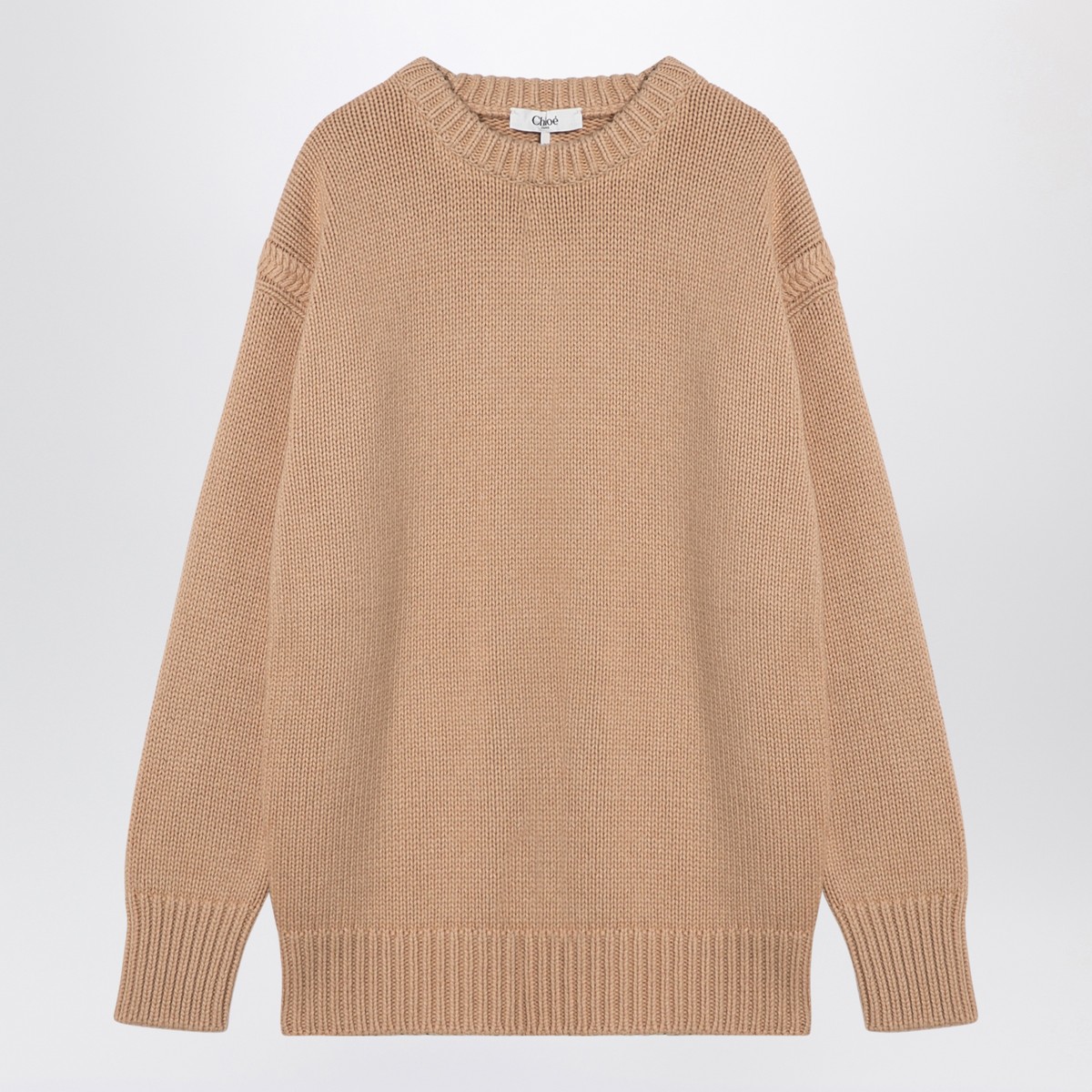 Crew-neck jumper by Chloé in Nude-coloured cashmere and cotton featuring an oversized design, long sleeves with low shoulders, and a ribbed collar, cuffs and hem.
