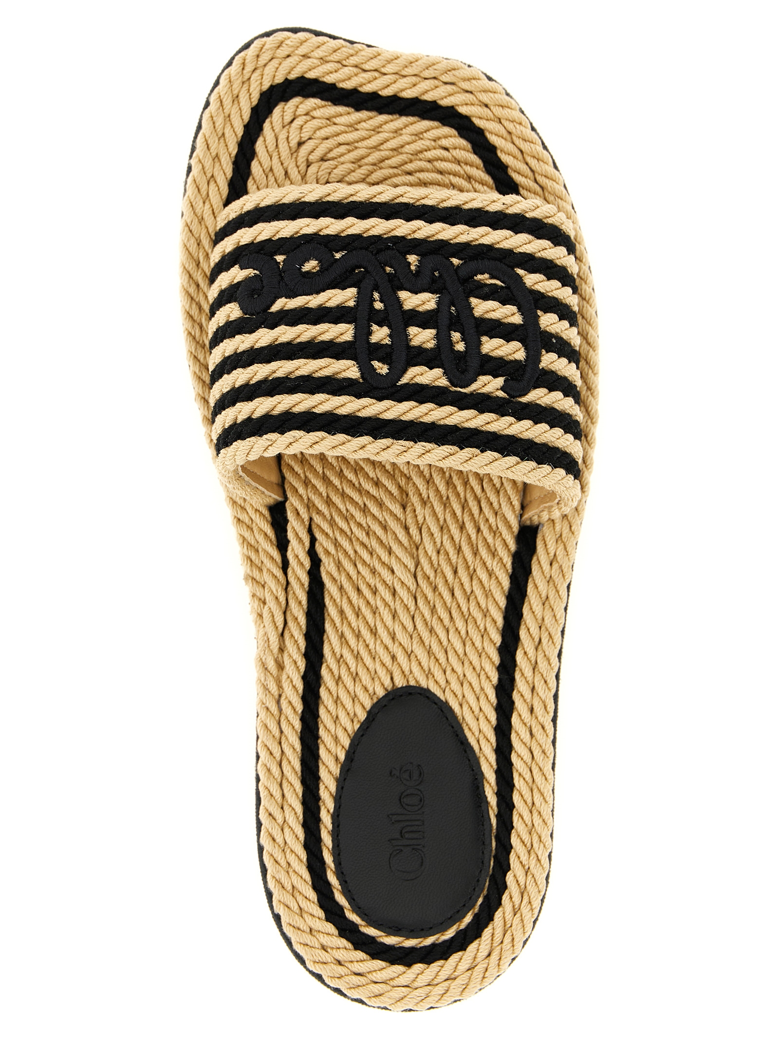 ‘chloé sand’ hand-woven two-tone rope sabots, Front band with hand-embroidered lettering logo and leather lining, Wavy eva sole.