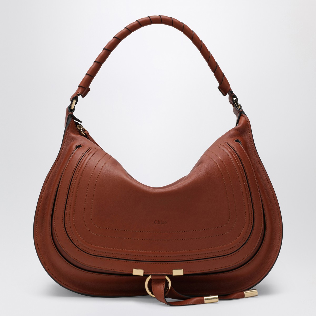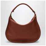 Shoulder bag by Chloé in brown leather, featuring top handle, front flap, zip closure, spacious main compartment, open front pocket hidden under the flap, and internal flat pocket.
