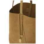 gold khaki suede texture central panel top handles chain detail charm detail Spin suede leather tote bag