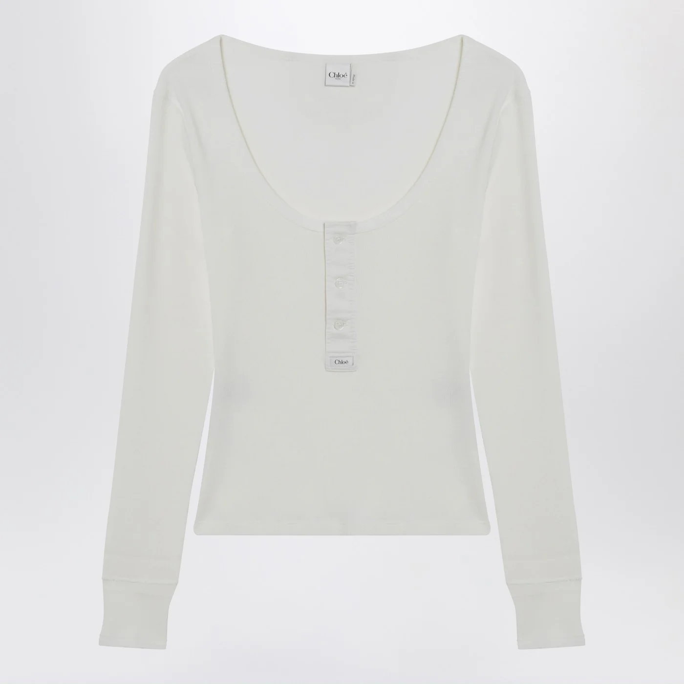 Chloé White Henley cotton jersey top