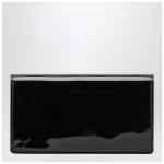 Black patent leather clutch bag by Christian Louboutin made of glossy patent leather featuring a detachable gold-toned shoulder strap, flap with magnetic fastening and gold-toned logo on the front.