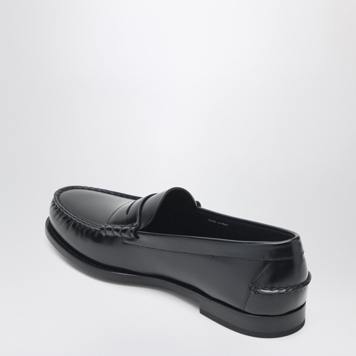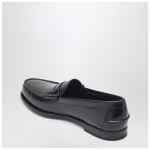Church’s black leather loafer, featuring a round toe with gathered detailing, logo insole, flat sole, leather lining and low heel.