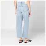 Citizens of Humanity jeans in light blue washed cotton denim, featuring a front zip and button closure, high waist with belt loops, five classic pockets, a back logo patch, and a small logo tag.