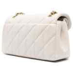cream white, calf leather, padded design, quilted, leather and chain-link shoulder strap, gold-tone logo plaque, rear magnetic-fastening pocket, logo tag, partitioned compartment, internal flap pocket, internal zip-fastening pocket, internal logo patch. Tabby 26 leather crossbody bag