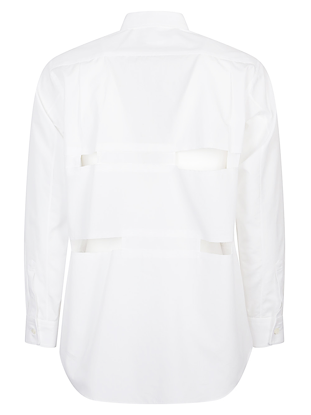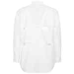 White shirt, long sleeves, pointed collar, front button closure and perforated details. Cotton overshirt