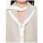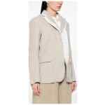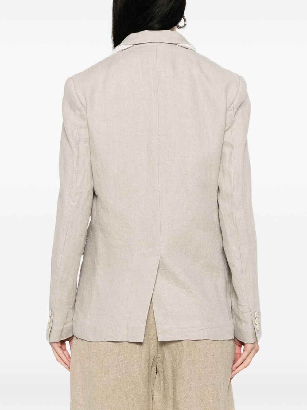 beige fringed trim button fastening notched lapels flap pockets long sleeves Linen single-breasted jacket.