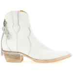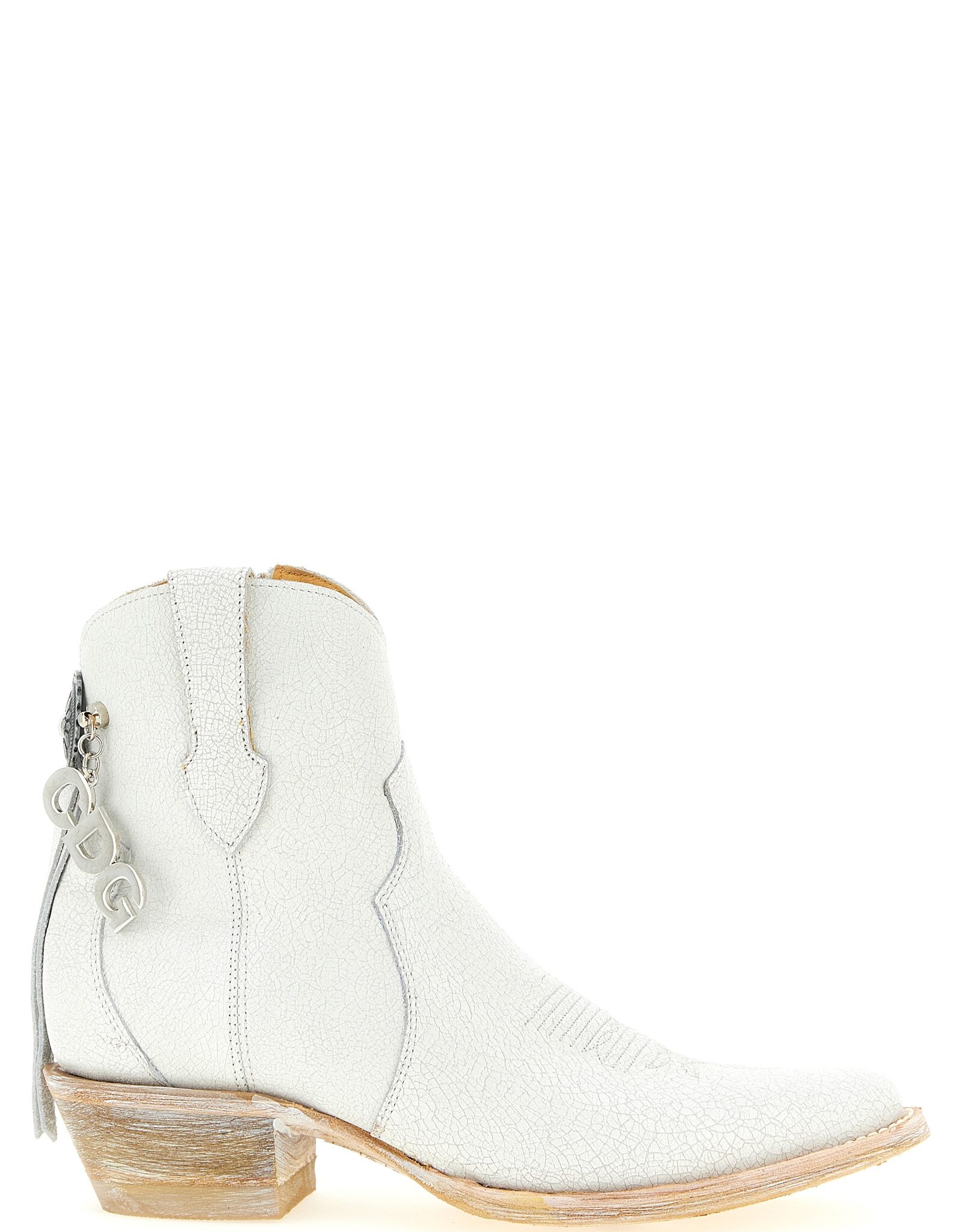 Comme des garçons x mexicana ankle boots in craquelé leather, Texan model with tapered toe and embroidery, Metal detail and back logo charm, Side zip closure, Wide heel, Leather sole. Size and Fit – UK WOMAN