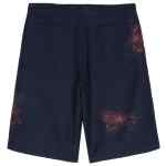 navy blue twill weave paint splatter detail tonal stitching belt loops two side inset pockets two rear patch pockets concealed fly and button fastening Printed shorts