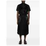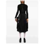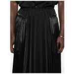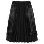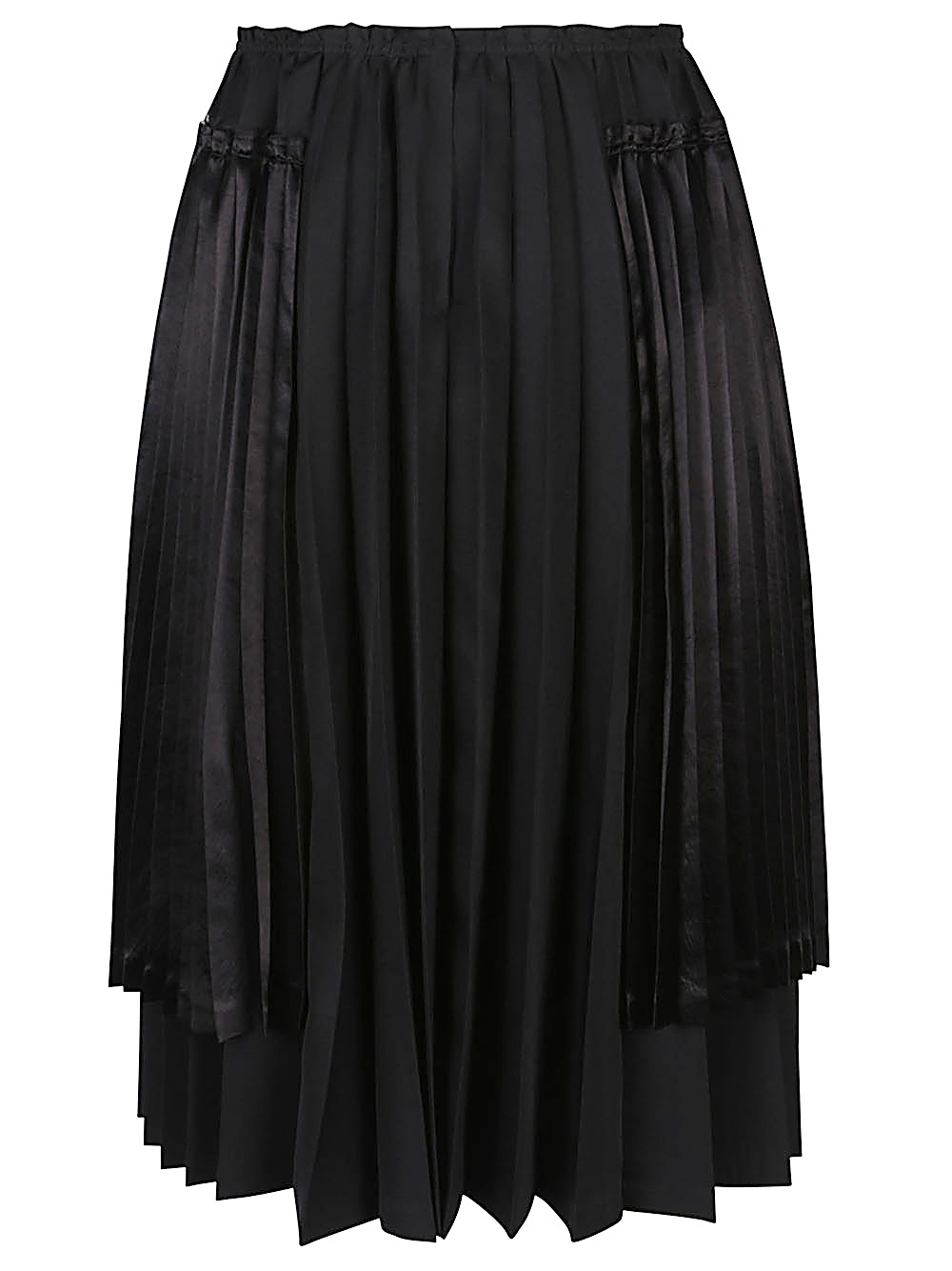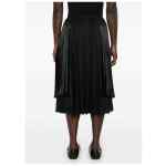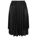 Black skirt, ribbed, midi length, straight hem. Pleated midi skirt