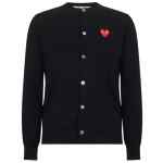 black ribbed crewneck front button placket long sleeves ribbed cuffs ribbed hem Wool cardigan