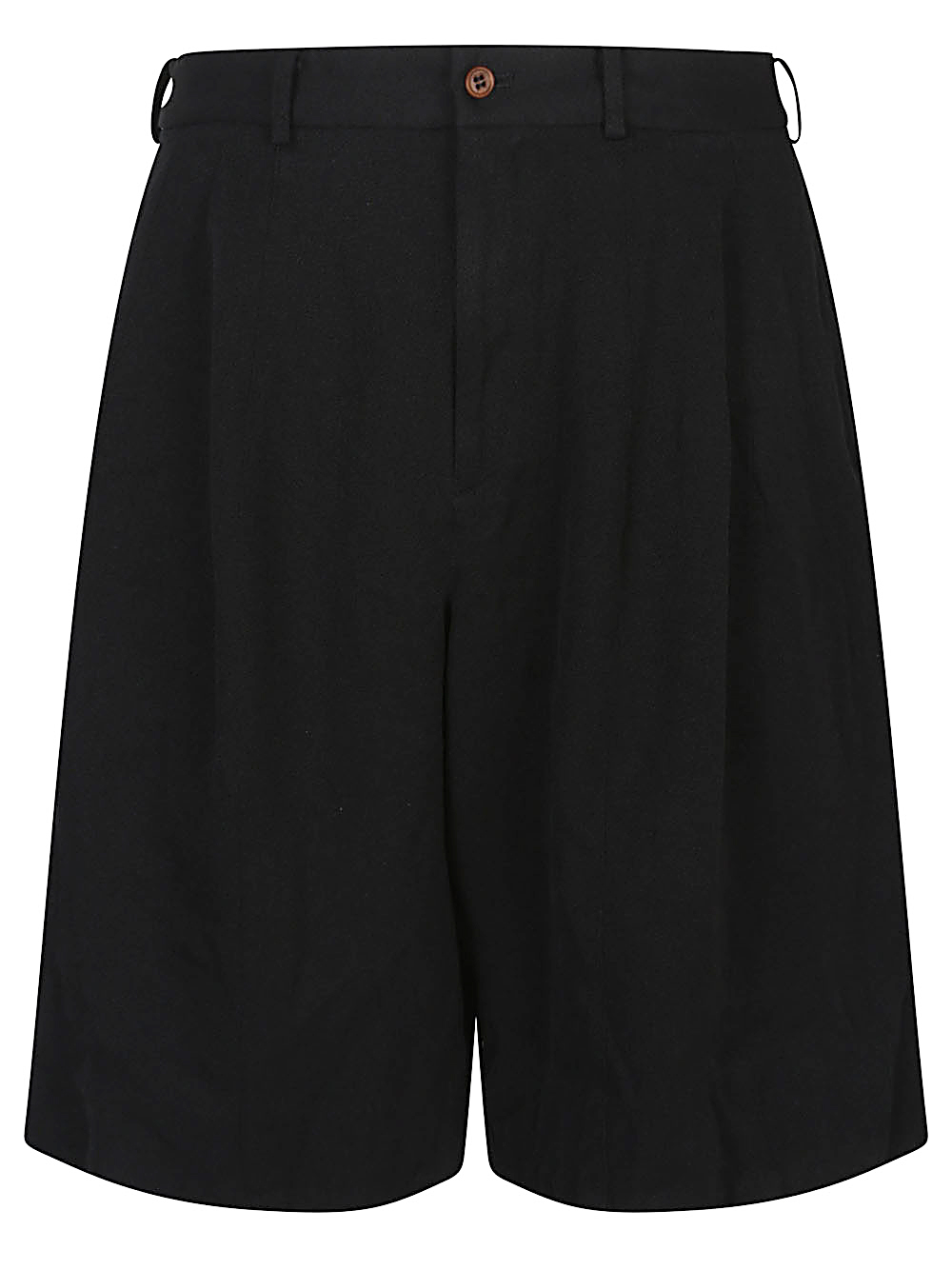 Black Bermuda shorts, belt loops, two front pockets and zip and button closure. Bermuda shorts