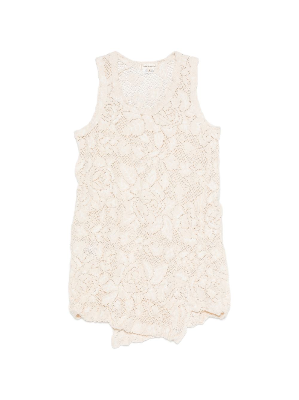 beige floral-lace pattern round neck sleeveless straight hem semi-sheer construction Cotton blend tank top.