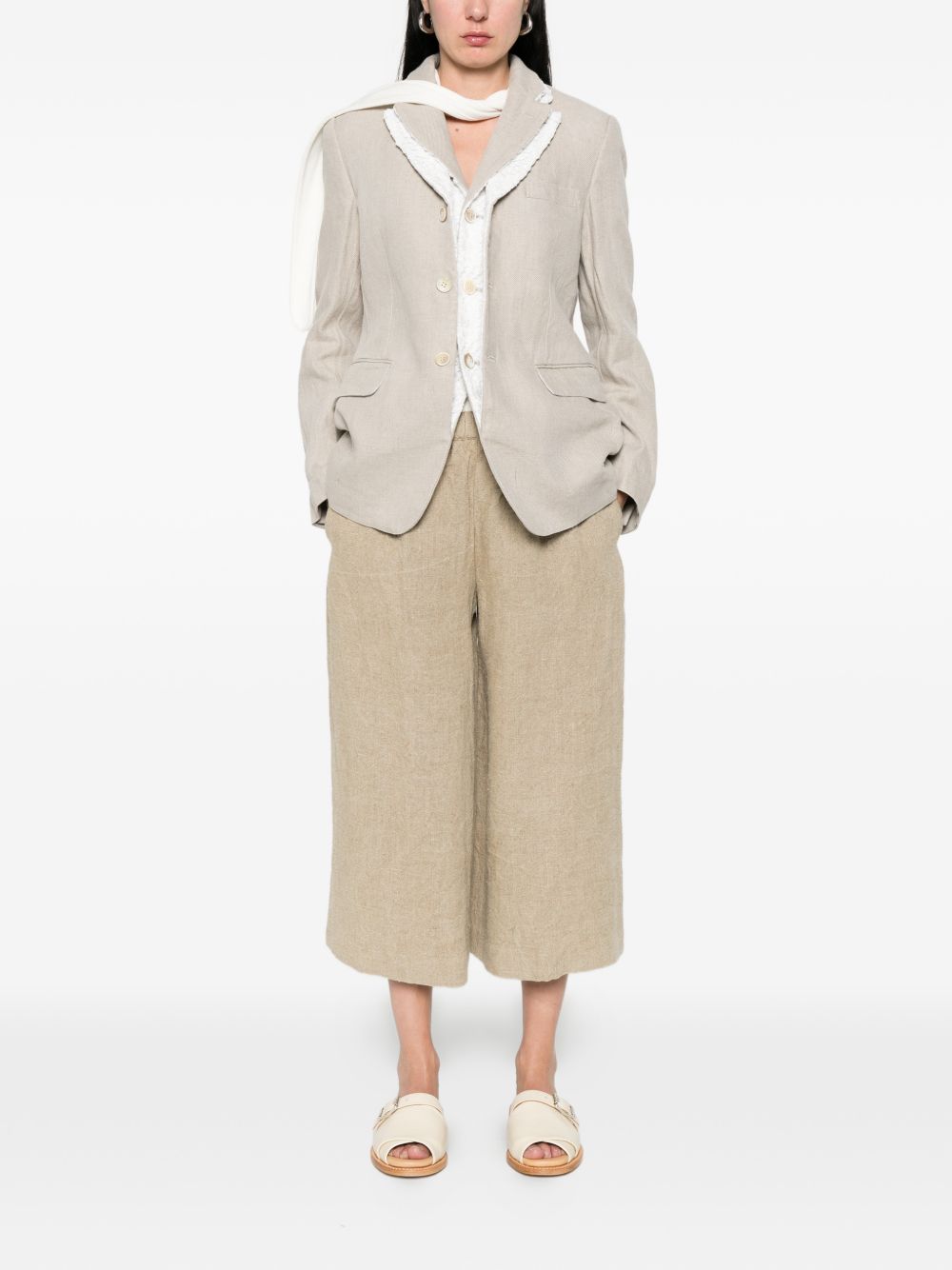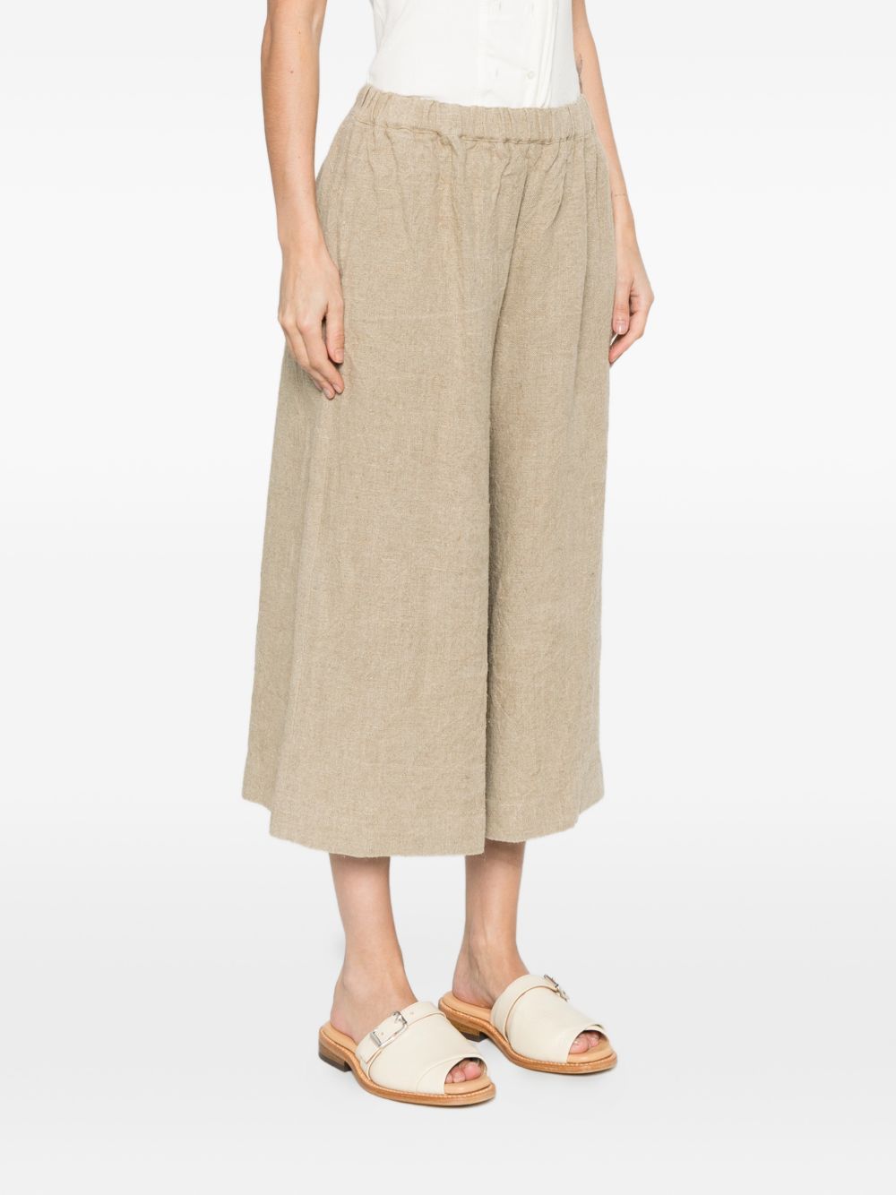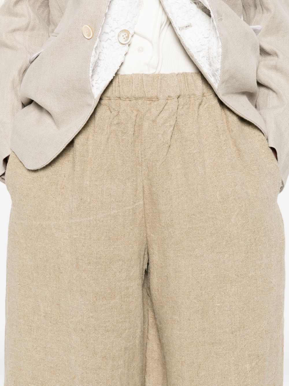 beige elasticated waistband wide leg Linen trousers