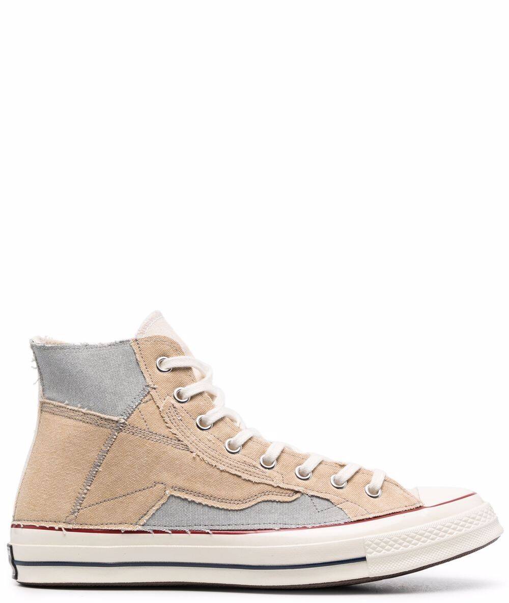 oatmeal-beige/grey canvas panelled design logo print to the side round toe front lace-up fastening ankle-length flatform sole Chuck 70 Hi sneakers