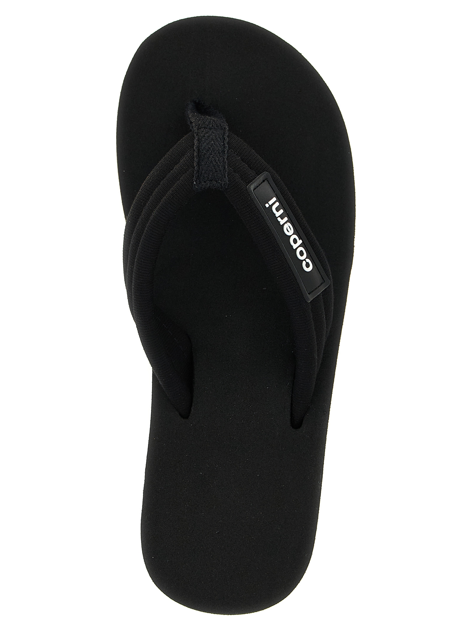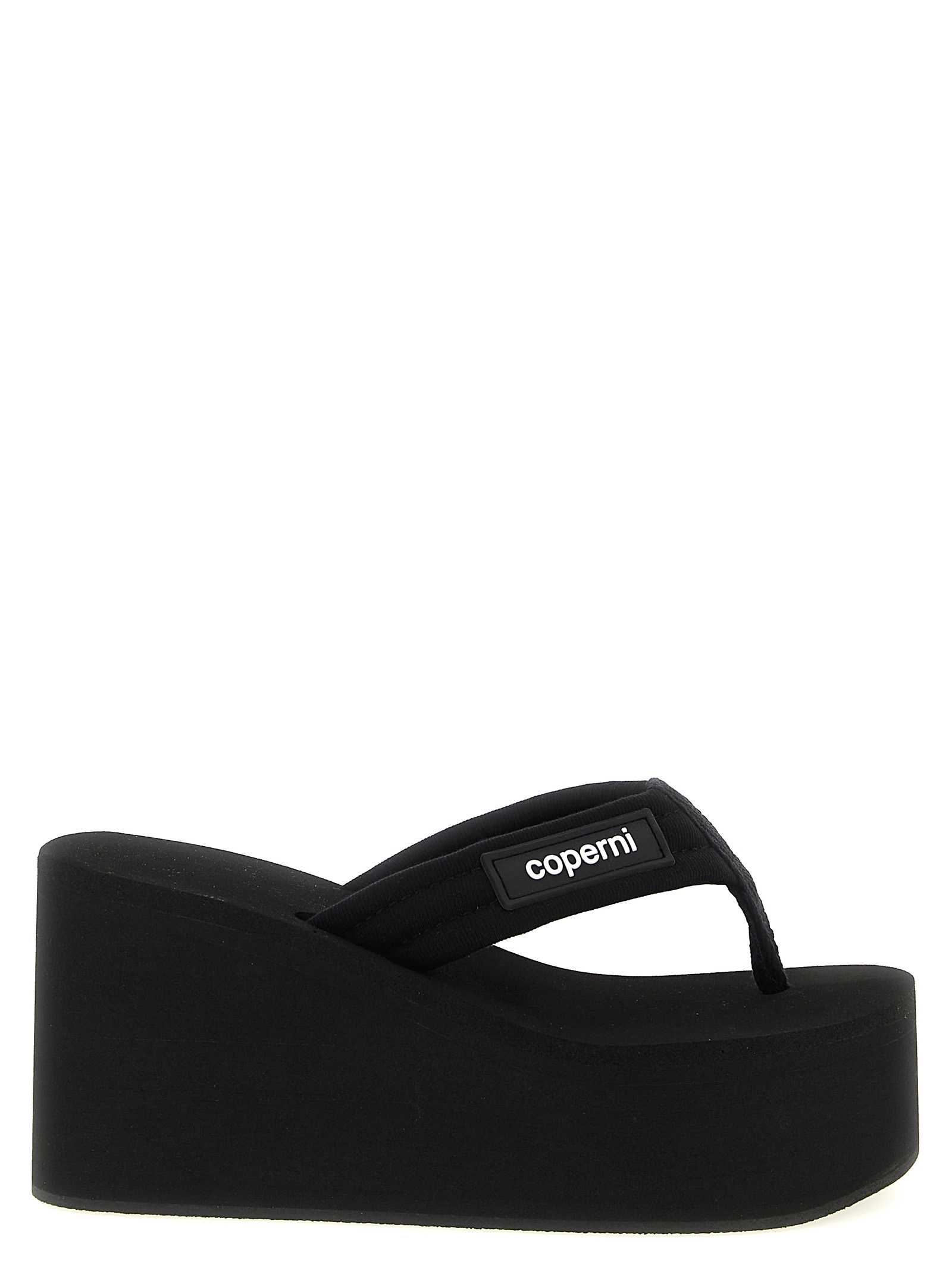 Branded wedge’ rubber sandals with lightweight platform sole.