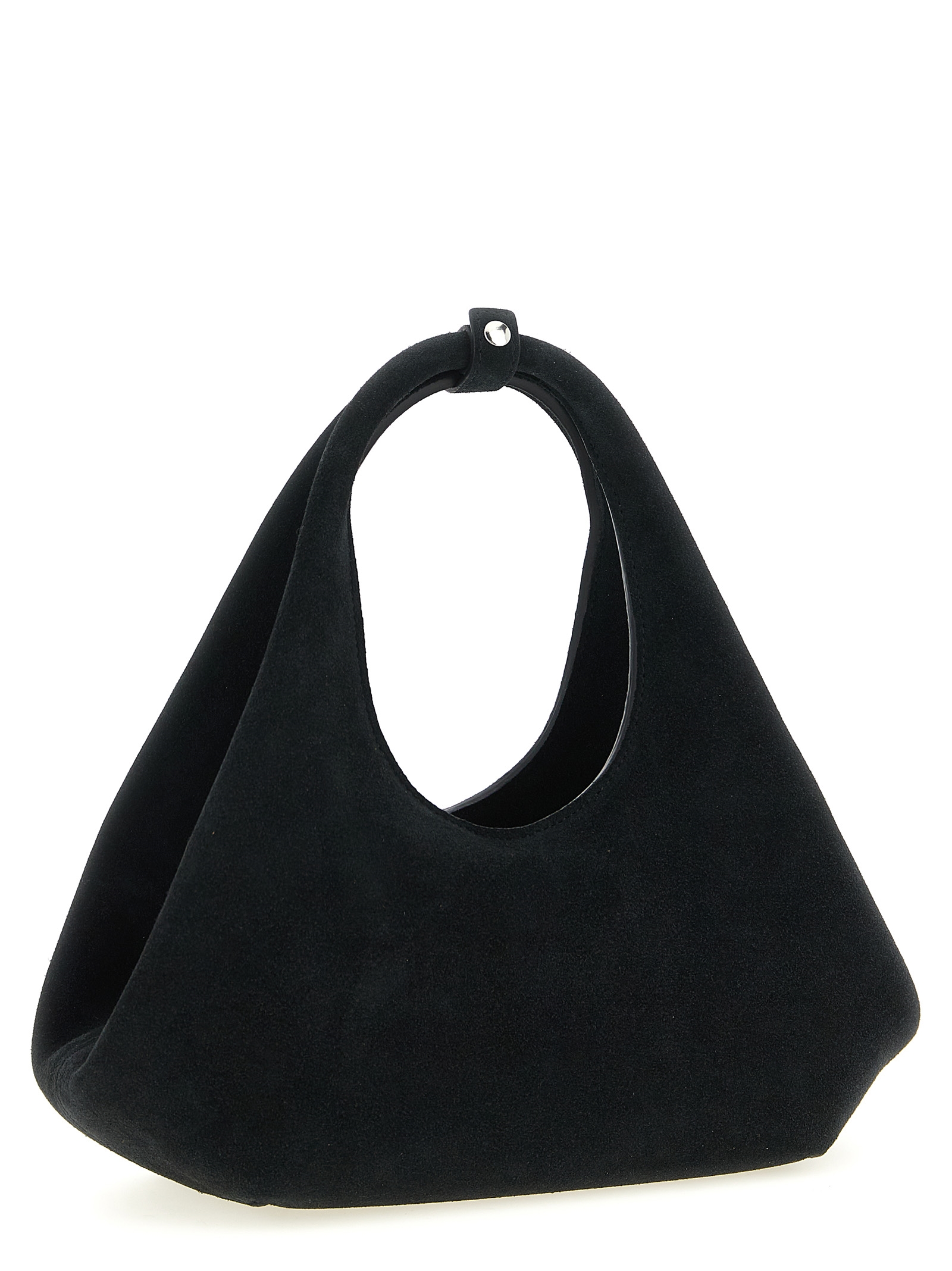 ‘Folded Mini’ suede handbag with front embossed logo, zip closure, double fixed tubular handle.
