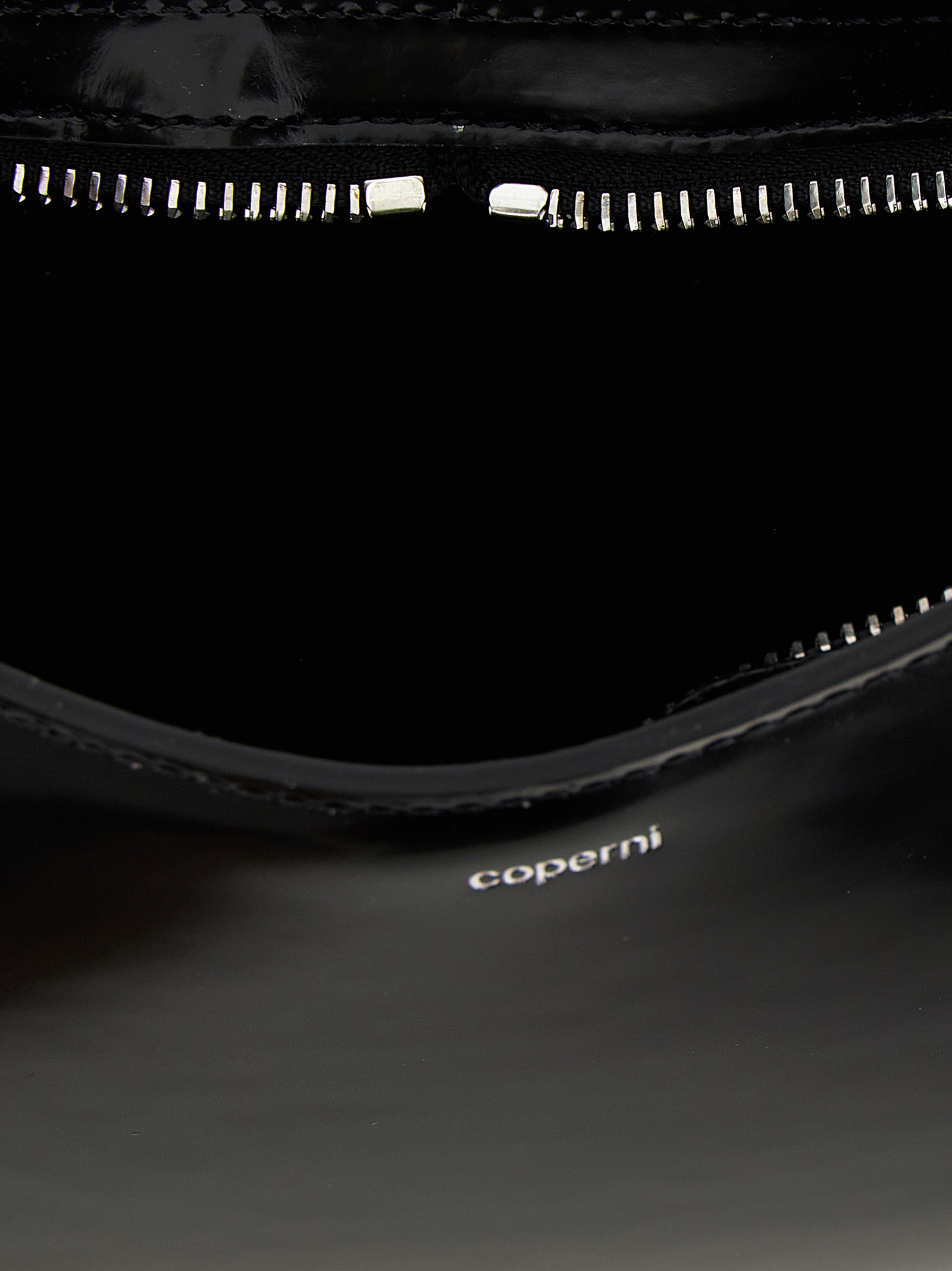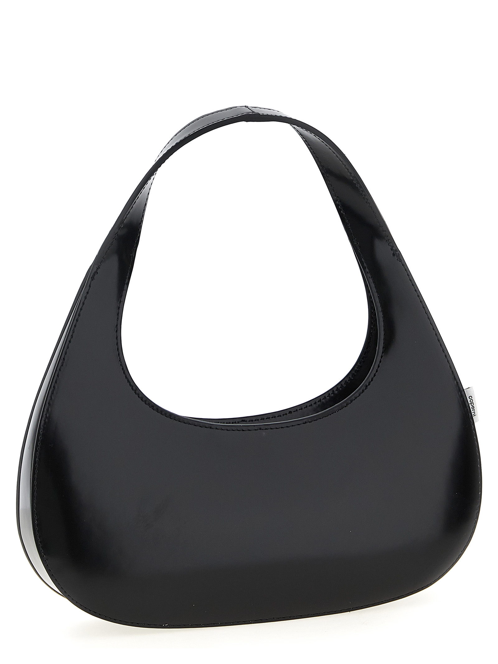 ‘New’ leather handbag with matte finish, front embossed logo, top zip closure, fixed handle.d handle.