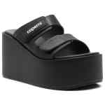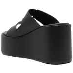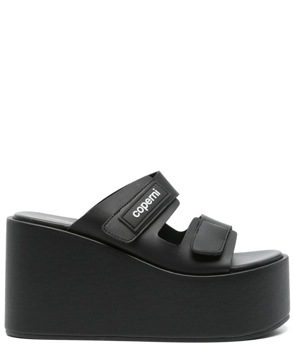 black double-strap design branded footbed high wedge heel open toe Wedge double-strap sandals
