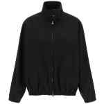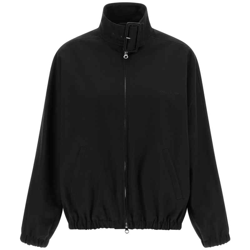 ‘buckle zipped bomber’ cotton canvas jacket with cupro lining, Tone-on-tone logo embroidery and front zip closure, Standing collar with buckle, Pockets, Long bat sleeves with elastic cuffs, Elastic hem.