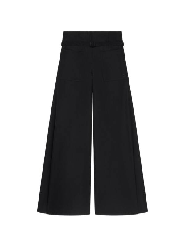 black belted waist side pockets wide leg Cotton trousers.
