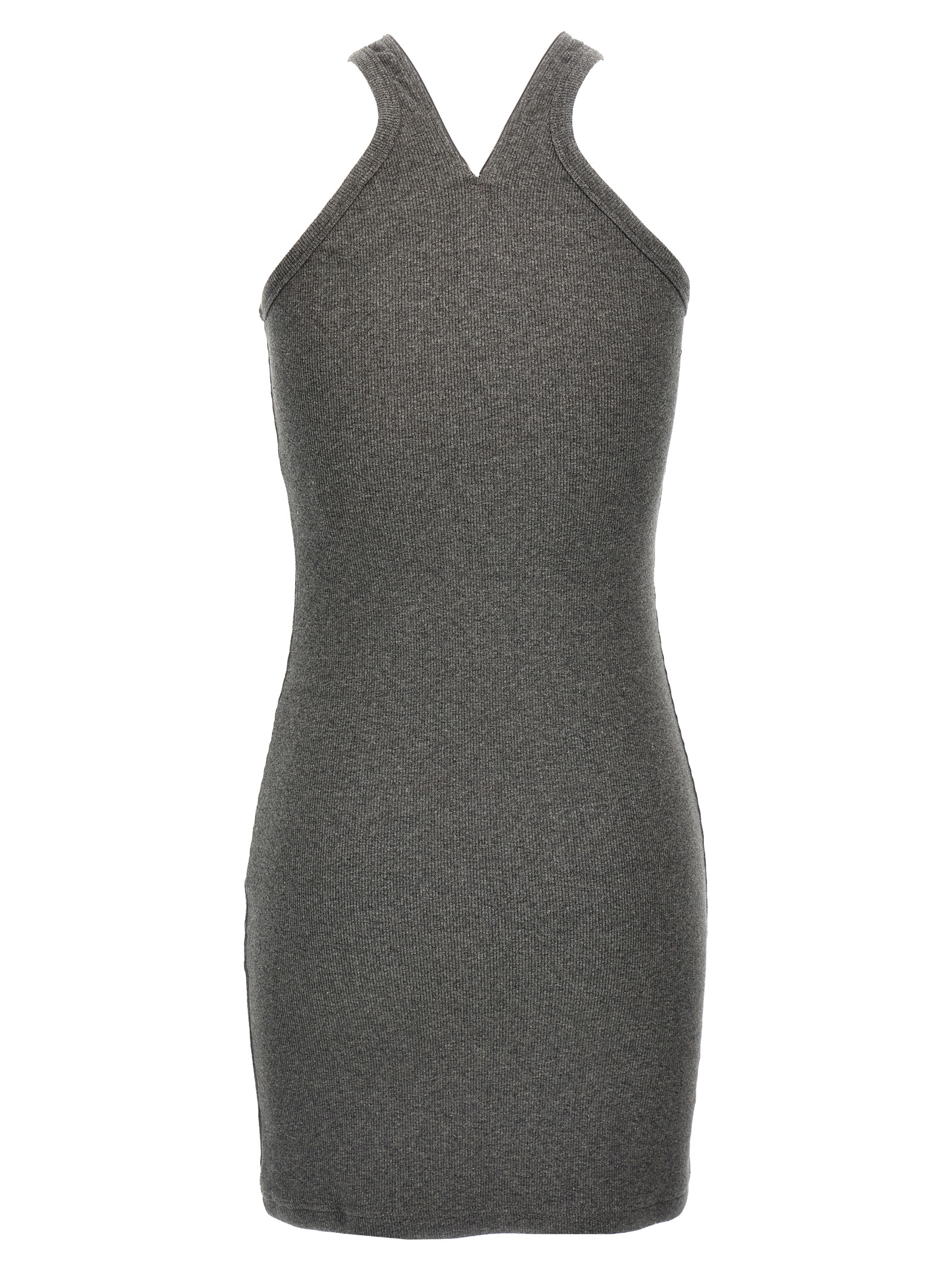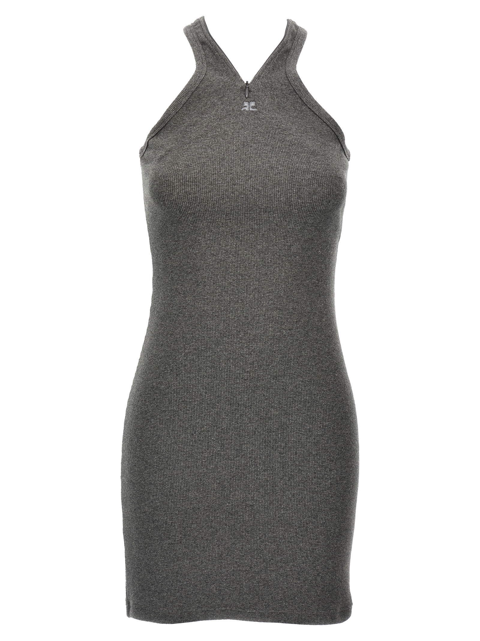 ‘criss cross 90’s mini’ ribbed cotton dress with v-neck with zip detail and front logo embroidery, Sleeveless.