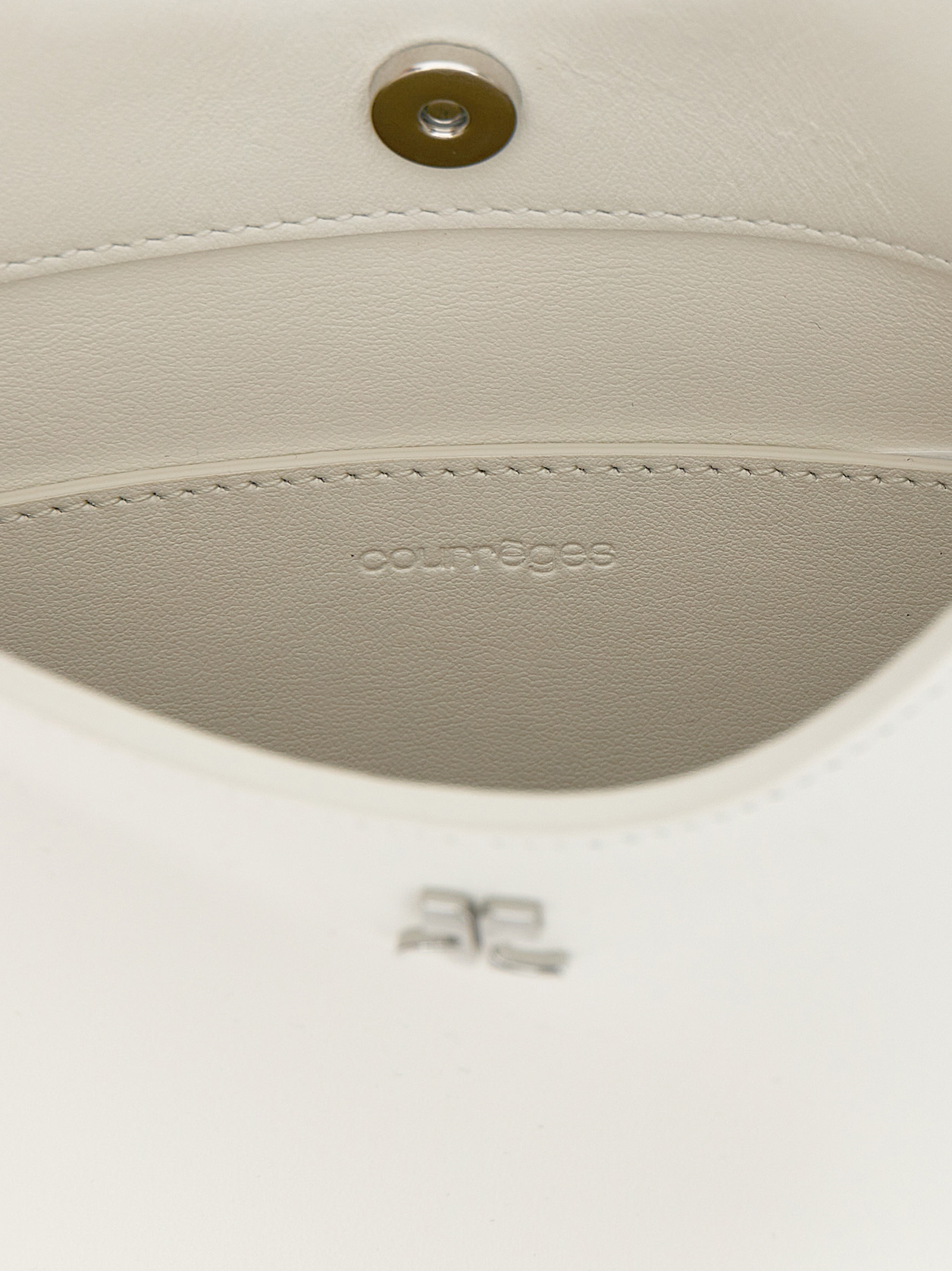‘Holy’ leather handbag with front metal logo, double fixed handle with strap detail, magnetic closure, adjustable and removable shoulder strap.