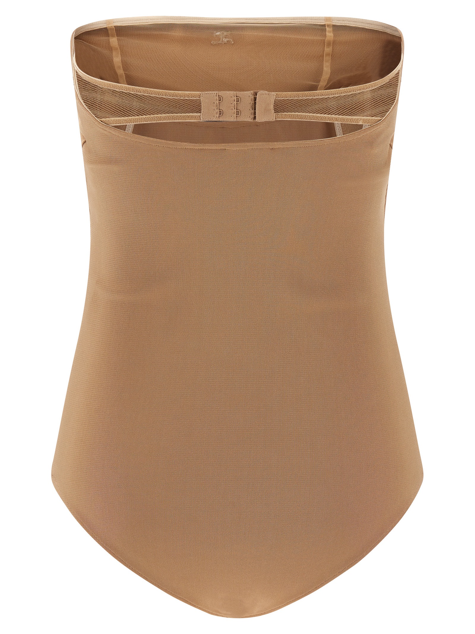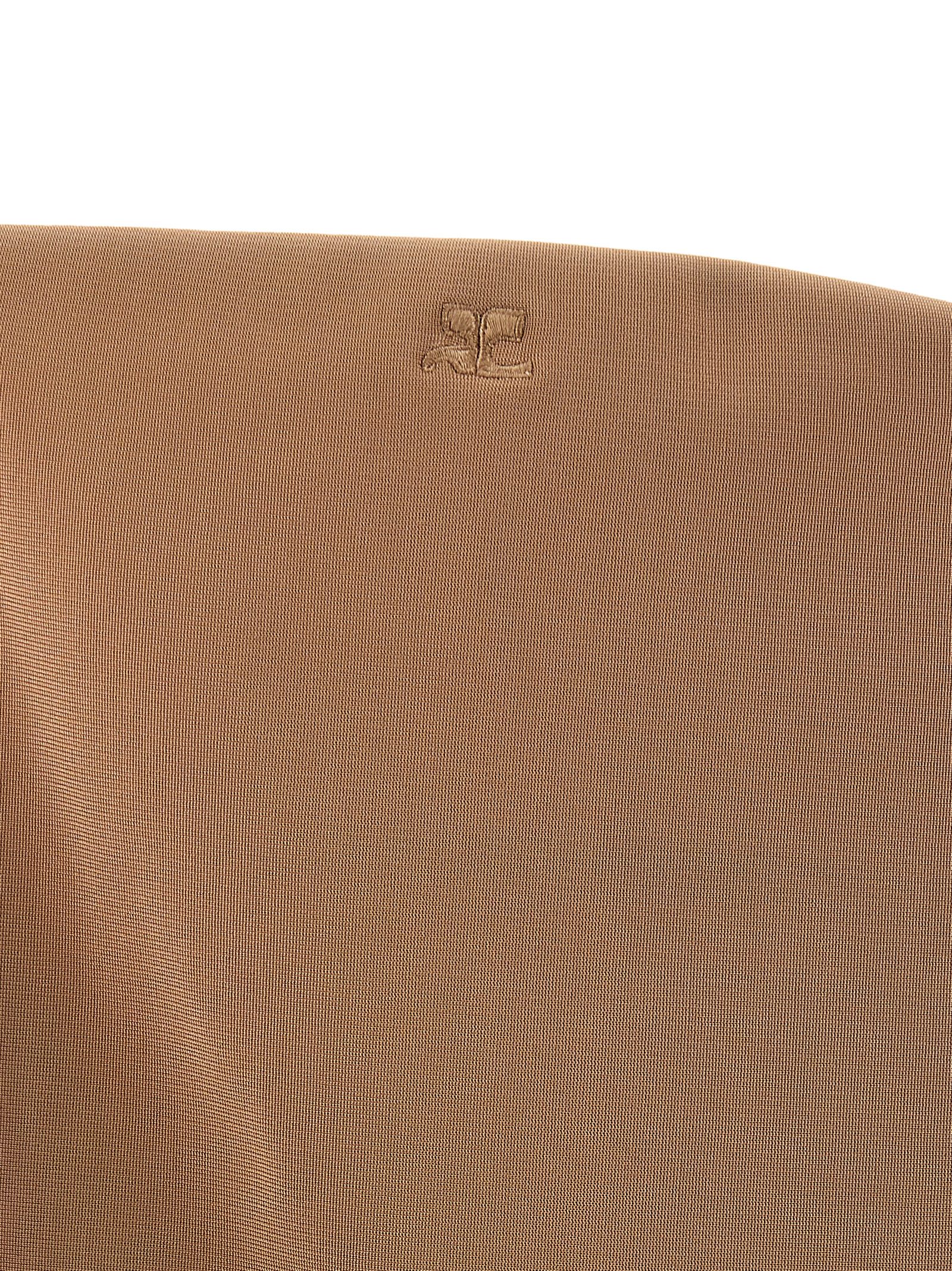 Viscose stretch jersey bodysuit, offe the shoulder style inspired by lingerie, tone-on-tone logo embroidery on the front, sleeveless, side splints, inner hook closure, snap buttons on the hem.