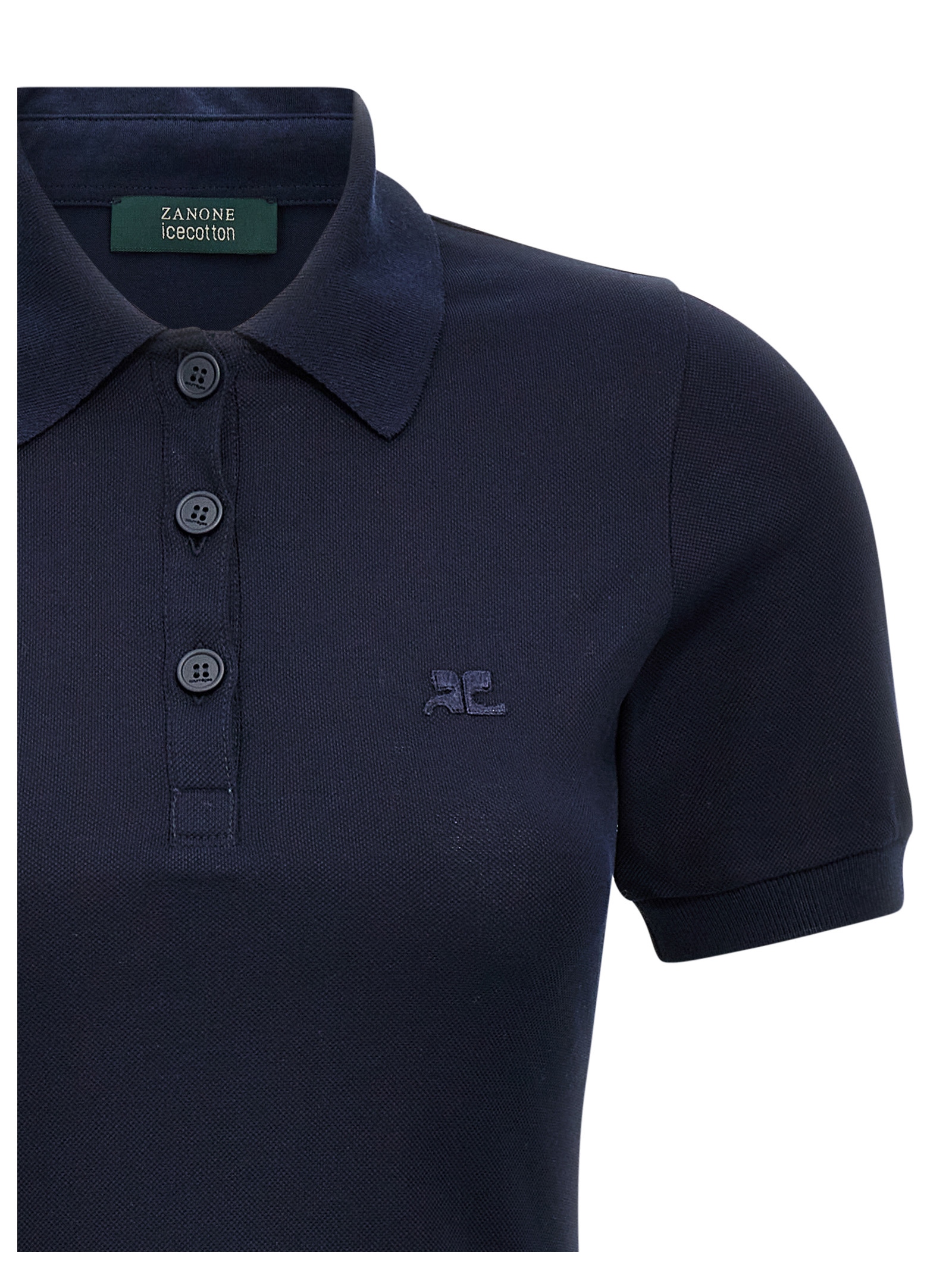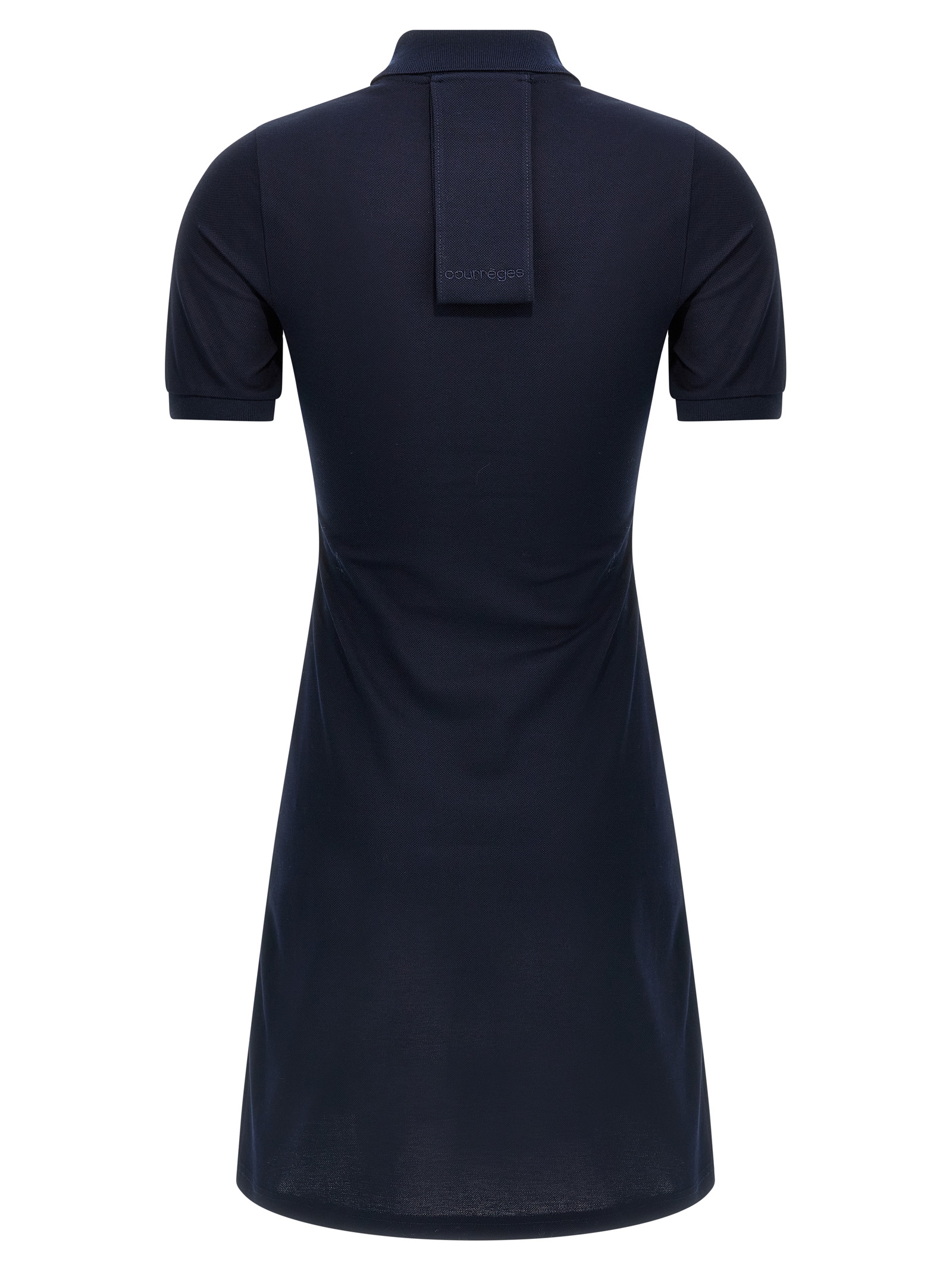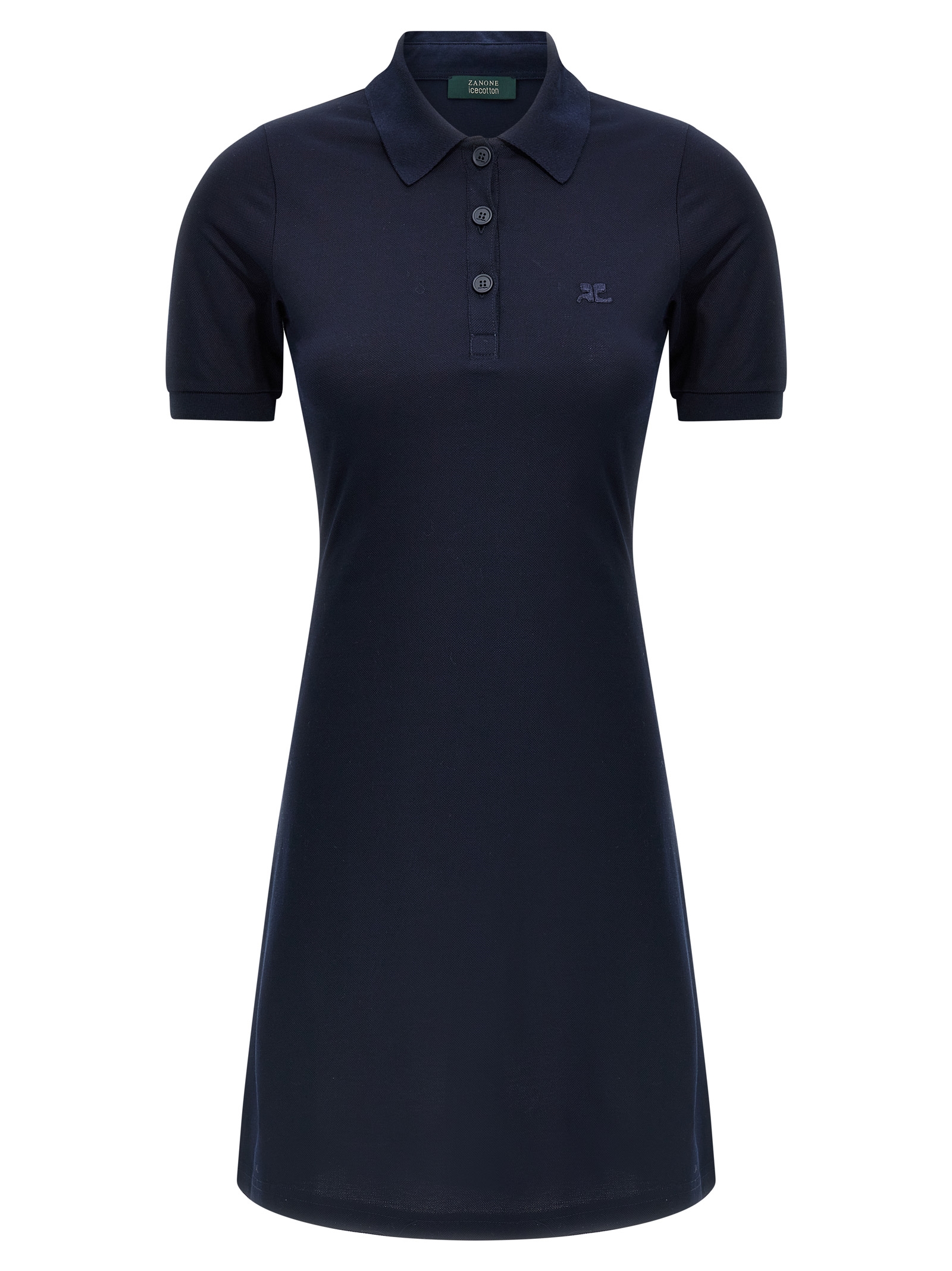 Piqué cotton polo mini dress with A-line silhouette, collar and buttons, tone-on-tone logo embroidery on the front, and short sleeves.