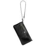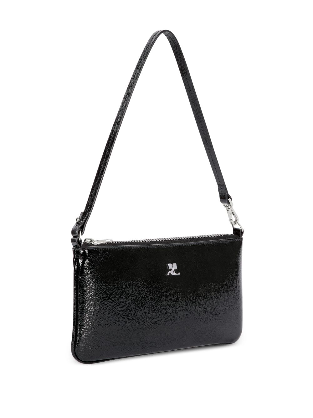 black bovine leather zip fastening detachable strap silver-tone hardware logo plaque Leather mini bag