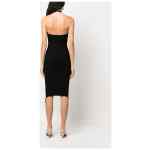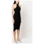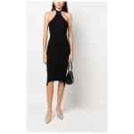 halterneck bodycon dress from COURRÈGES featuring black, ribbed knit, bodycon design, embroidered logo, halterneck, sleeveless, open back, below-knee length and ring hardware detailing. Sleeveless long dress