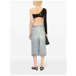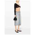 light blue cotton washed denim logo patch to the rear D-ring findings belt loops front button fastening classic five pockets central rear vent straight hem mid-length Denim midi skirt