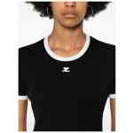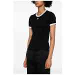 black cotton jersey texture ribbed contrasting borders crew neck short sleeves logo patch to the front straight hem Logo cotton t-shirt