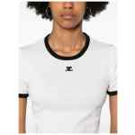 white/black cotton logo embellishment contrasting trim short sleeves round neck straight hem Logo cotton t-shirt