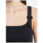 black ribbed texture buckle detail embroidered logo sleeveless scoop neck