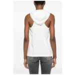 white cotton jersey texture classic hood sleeveless embroidered logo to the front logo patch to the front racerback unlined straight hem Hooded tank top