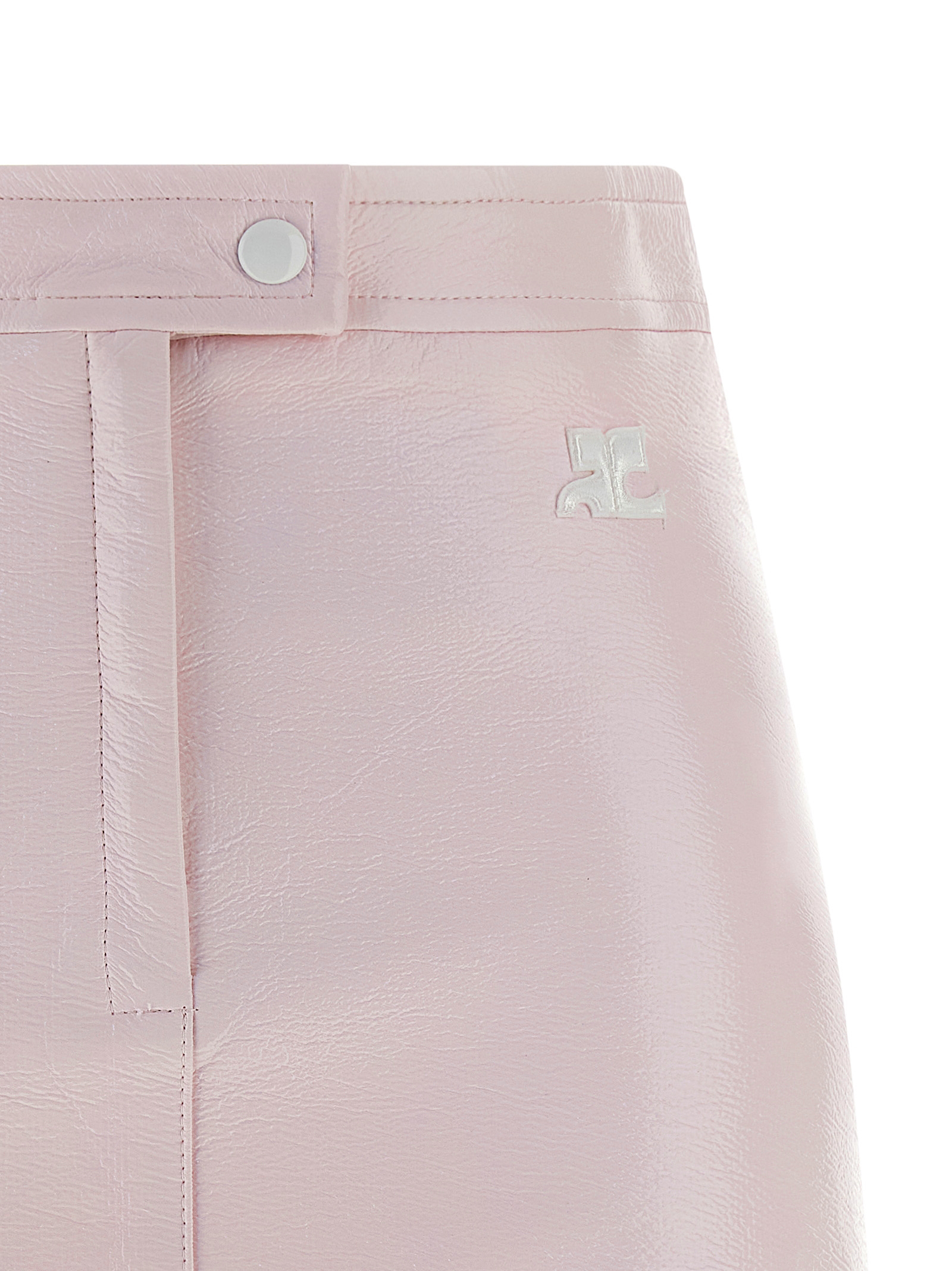 ‘vinyl’ shiny vinyl skirt with zip and button closure, Front logo.